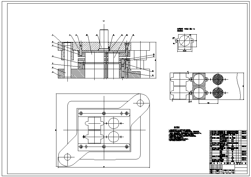 TC4钛合金水泵连接垫圈垫片双排级进模模具设计 由于零件的生产批量是大批量及模具类型的确定,合理安排生产可采用左右自动送料方式。冲裁工艺分析可知,采用级进模冲裁。因为该模具采用的是条料,控制条料的送进方向采用导料板,无侧压装置。控制条料的送进布距采用挡料销定距