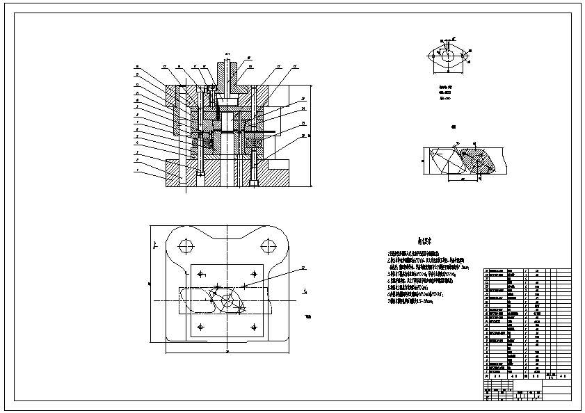 菱形垫片冲压倒装复合模具设计 本制件选用材料Q235钢。垫片总体为腰形件,上下左右对称,厚度为2mm, 垫片上有3个通孔,2个小圆孔和一个大孔。垫片上的孔最小分别为5mm。所以垫片可以采用较简单的复合冲裁模。复合冲裁模采用落料冲孔同时加工,复合冲裁模加工的精度较高且垫片要求无翘曲无扭曲。所以选择倒装落料冲孔复合。