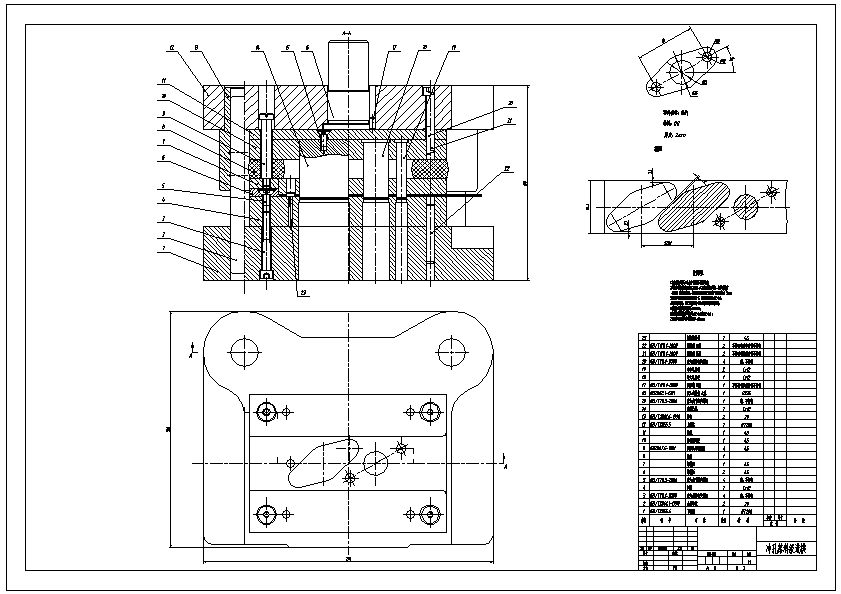 中心距60斜垫片零件冲压级进模设计 在冲裁工艺分析和技术经济分析的基础上,根据冲裁件的特点确定工艺方案。工艺方案分为冲裁工序的组合和冲裁顺序的安排。级进冲裁是把冲裁件的若干个冲压工序,排列成一定的顺序,在压力机的一次行程中条料在冲模的不同位置上,分别完成工件所要求的工序。由以上冲压工艺分析可知,采用级进模冲压。