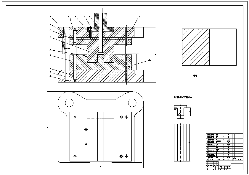 弯板零件冲压复合模设计 冲裁工序分为单工序冲裁、复合冲裁和级进冲裁三种。 单工序冲裁是在压力机一次行程内只完成一个冲裁工序的冲裁模。 复合冲裁是在压力机一次行程内,在模具的同一位置同时完成两个或两个以上的冲裁工序。 级进冲裁是把冲裁件的若干个冲裁工序,排列成一定的顺序,在压力机的一次行程中条料在冲模的不同位置上,分别完成工件所要求的工序。 复合模虽然生产效率高,而且冲裁件的内孔与外缘的相对位置精度也是很高的,板料的定位精度要求比复合模低。由于零件的生产要求的是大批量生产,但是由于零件的边缘规则,并且带有弯曲,所以使用复合模进行生产。