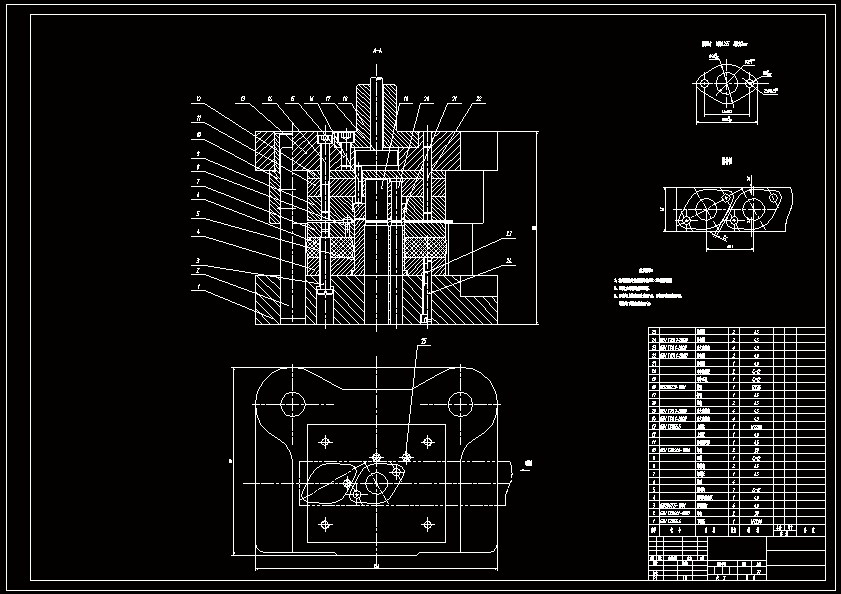 垫片落料冲孔复合模具设计 对垫片的结构性、材料进行分析,选择合适的方式进行生产。材料的分析来确定工件是否适合生产。之后要通过工件的厚度来确定工件排样图的搭边,然后计算排样图的材料利用率。 接下来就是进行冲压力的计算,通过计算冲压力选择合适的冲压设备。模具刃口的计算也有其的重要,只有选择合适的刃口才能够确保模具的寿命,提高模具的使用率。 模具刃口计算后,就是模具的结构设计,先进行凹模外形尺寸的计算的通过凹模的外形尺寸来得到模具中其他固定板、卸料板等的尺寸,最后选择模架等一系列标准件,最终完成模具的设计。