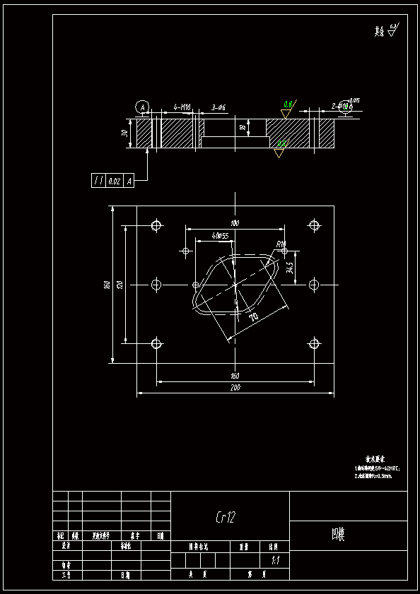 菱形垫片冲压正装复合模设计 复合冲压模的特点是生产率高,冲裁件的内孔与外缘的相对位置精度高,本制件为 小尺寸平板冲裁件,要求平整、料厚很小,且要求大批量生产,故采用顺装式复合冲裁 模。凹模采用整体结构。为了使加工平稳和送料方便,模具采用对角导柱。本复合模采用了冲孔和落料两个工序进行冲压。
