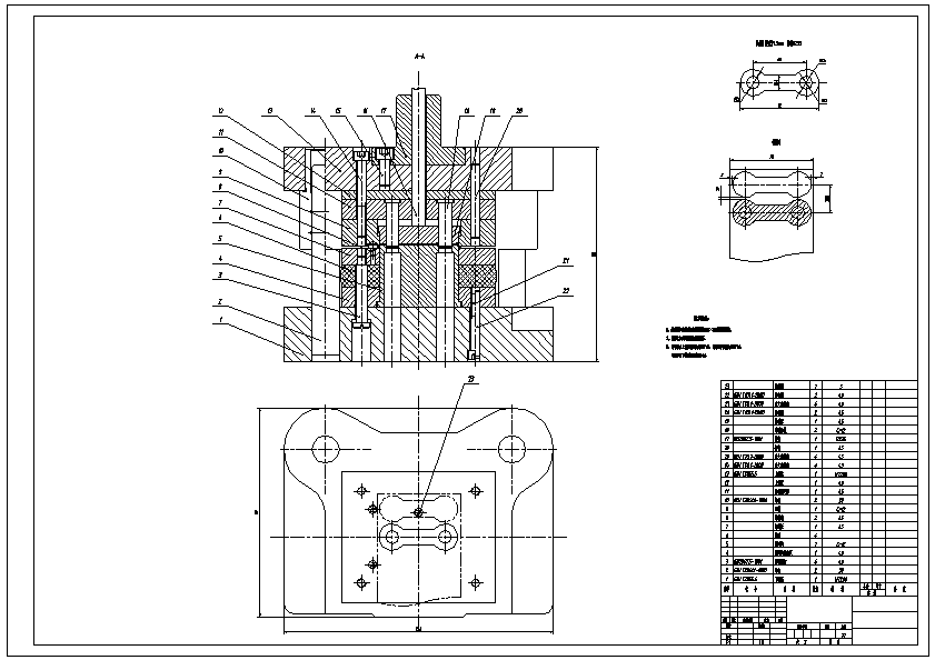V形弯板复合模设计 采用落料弯曲复合模进行冲压,可以获得较高的生产效率,而且操作安全,同时也能保证工件的精度。根据设计需要和生产批量,综合考虑以上方案,方案3最适合。即落料、弯曲在同一复合模中完成,这样既能保证大批量生产的高效率又能保证加工精度,而且成本不高,经济合理。