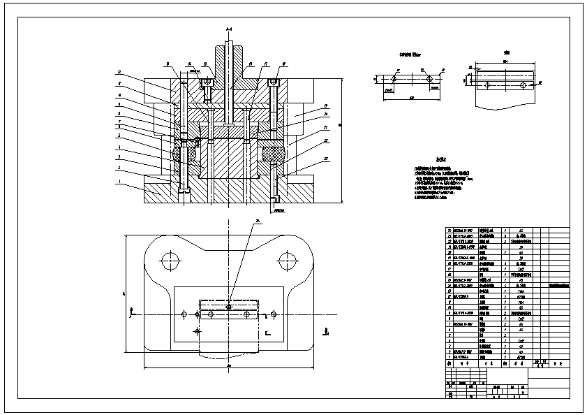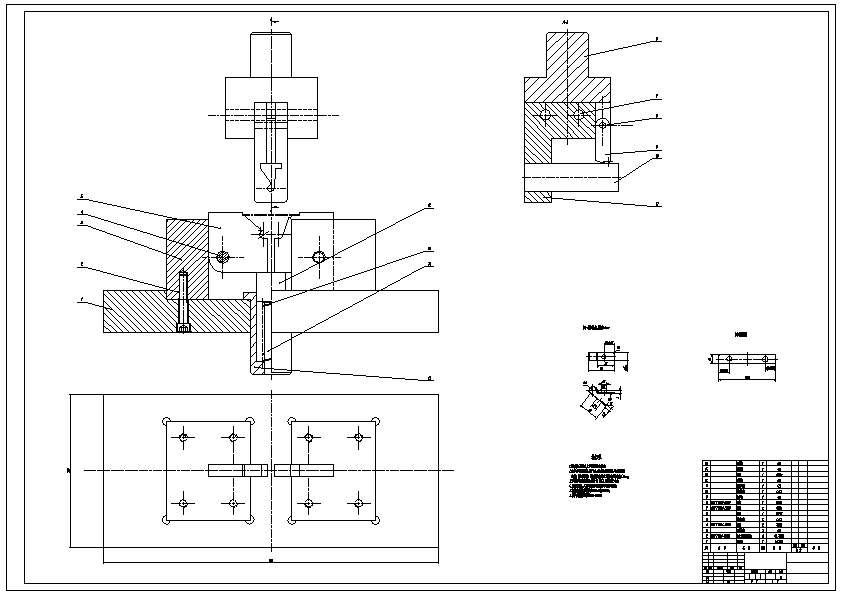 卡子零件冲压复合模和弯曲模设计 通过对制件的材料,结构,尺寸精度分析。本制件选用材料冷轧钢。卡子总体外形简单,厚度为1.0mm, 卡子有两个圆孔,直径分别为7mm和8mm,上边有向内弯曲。有多处弯曲,弯曲最小半径为R1mm。所以卡子可以采用较简单的复合冲裁模和弯曲模。复合冲裁模采用落料冲孔同时加工,复合冲裁模加工的精度较高且卡子要求无翘曲无扭曲。所以选择倒装落料冲孔复合模。