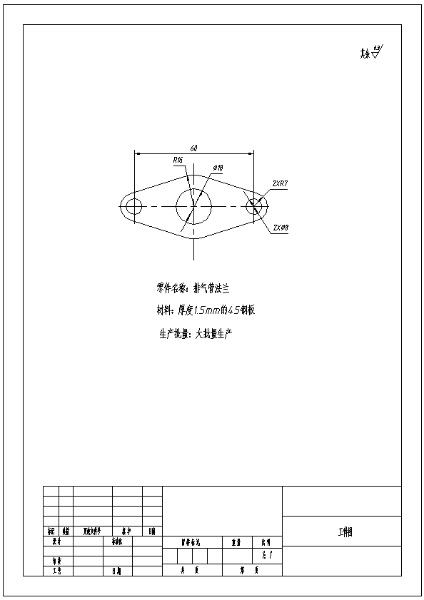 排气管法兰垫片落料冲孔复合模设计 通过对正装式复合模和倒装式复合模两种优点、缺点及适用范围的分析比较,正装式复合模适合于冲制材质较软或板料较薄的平直度要求较高的冲裁件,还可以冲制孔边距离较小的冲裁件。而倒装式复合模不宜冲制孔边距离较小的冲裁件,但倒装式冷冲模结构简单,可以直接利用压力机打杆装置进行推件,卸件可靠,便于操作,并为机械化出件提供了有利条件,故应用十分广泛。综上所述,该制件结构形状简单,精度要求较低,孔边距较大,宜采用倒装式复合模。