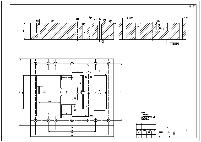 托支架的冲压级进模设计 通过工件的工艺分析,以及各个生产方案的对比,决定采用级进模完成工件的生产。 ,不但可以满足实际生产的需要,同时可以实现大批量生产。初步确定工件的生产工序为:侧刃定距冲孔、切边、弯曲、弯曲、切断。中间可以根据实际情况增加空工位。