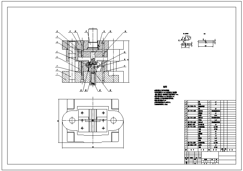 60度°弯板弯曲模设计 该零件结构较相对简单、形状对称,属于中等冲裁件。零件尺寸公差为IT14,但是由于工件采用U形弯曲,并且有向内弯曲,所以弯曲需要分为两步工序,首先进行U形预弯曲,然后采用最终向内弯曲。工件材料为10,材料的抗剪强度为260-360MPa,抗拉强度为330-450MPa,伸长率为32,屈服极限为200。本次设计只考虑弯曲模的设计。