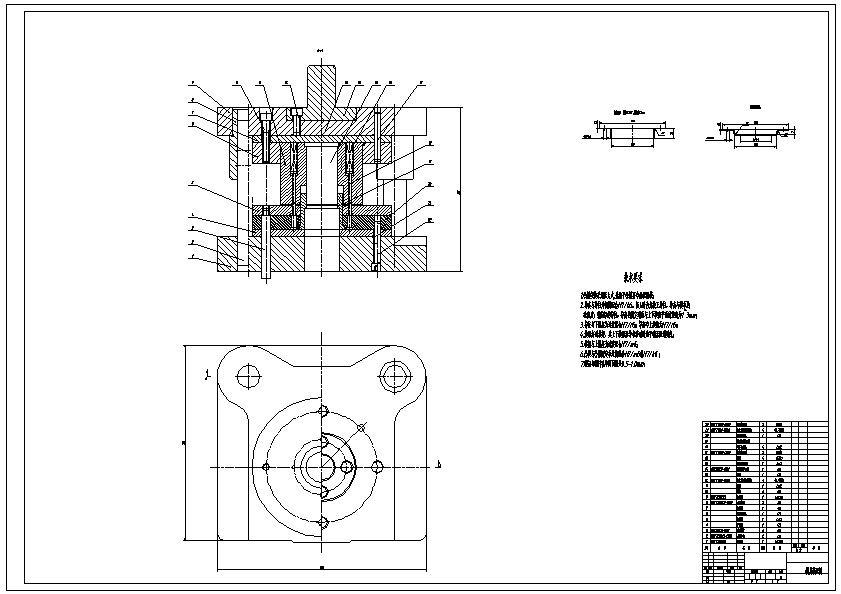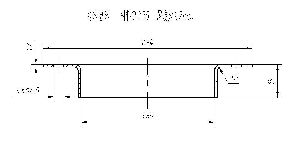 挂车垫环冲孔翻边冲压模具设计 本次设计主要考虑冲孔和翻边两个工序的模具设计。 首先分析工件,由于工件尺寸十分的大,并且生产具有较高的要求,四角导柱的尺寸不合适,对角导柱容易偏移,所以在设计中我们采用导向精度好的中间导柱导向模架。