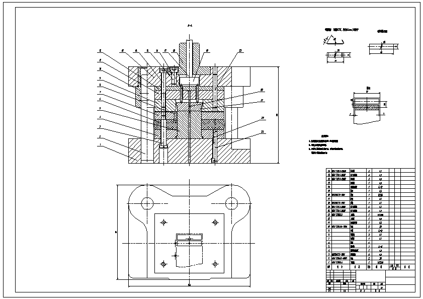 锥形弯曲件冲压模具设计【冲孔落料、弯曲】 对锥形弯曲件的冲孔、落料及其弯曲模具的设计,通过对零件图形的结构和生产工艺性的分析,决定采取冲孔和落料复合模和弯曲单工序模,同时考虑到倒装式复合模的冲孔废料直接由冲孔凸模从凸凹模内孔推下,无顶件装置,结构简单,操作方便,故选用倒装式复合模具。