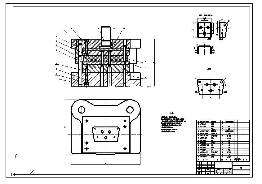 左铰链座单工序冲孔模具设计 冲孔模的设计,冲压模具主要是将板料分离或成形而得到制件的加工方法。因为模具的生产主要是大批量的生产,而且模具可以保证冲压产品的尺寸精度和产品质量,模具的设计与制造主要考虑到模具的设计能否满足工件的工艺性设计,能否加工出合格的零件,以及后来的维修和存放是否合理等。在本次设计中,不仅要考虑要使做出的零件能满足工作要求,还要保证它的使用寿命。