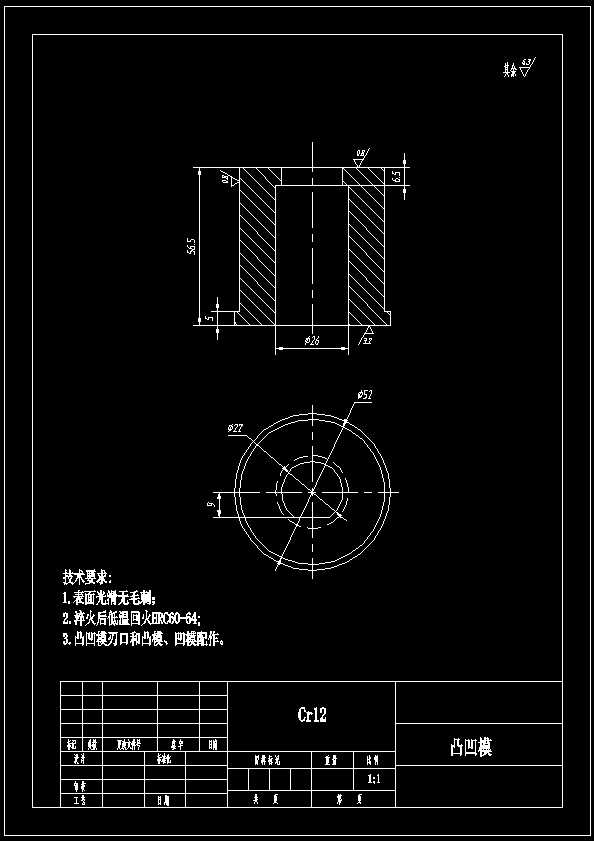 调节偏心轮冲孔落料倒装复合模设计 对调节偏心轮的冲孔及其落料模具的设计,通过对零件图形的结构和生产工艺性的分析,决定采取冲孔和落料在同一道工序完成的复合模,同时考虑到倒装式复合模的冲孔废料直接由冲孔凸模从凸凹模内孔推下,无顶件装置,结构简单,操作方便,故选用倒装式复合模具。