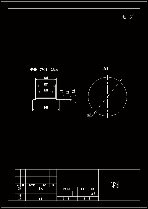 碗筒形垫圈落料冲孔拉伸复合模设计 该零件为带翻边的工件,料厚t=0.8mm,拉深后厚度不变;零件底部圆角半径r=0.2mm;未注尺寸公差都为IT14,满足拉深工艺对精度等级的要求。