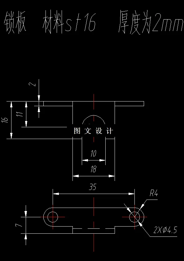 锁板冲压级进模模具设计 对尺寸小,精度要求相对较高,工艺比较复杂,生产批量大的锁板进行设计。首先对主要的工作零件以及非标零件进行二维图的绘制,并且绘制本套模具的装配图及一些零件图