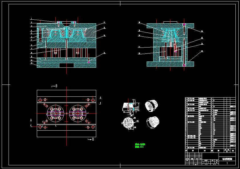 进水过滤罩注塑模具设计 根据塑件结构特点,模具采用单分型面注塑模,一模两腔,拼合式自动脱内螺纹机构,顶杆顶出塑件,能够满足实际中大批量生产,有很高的生产效率。