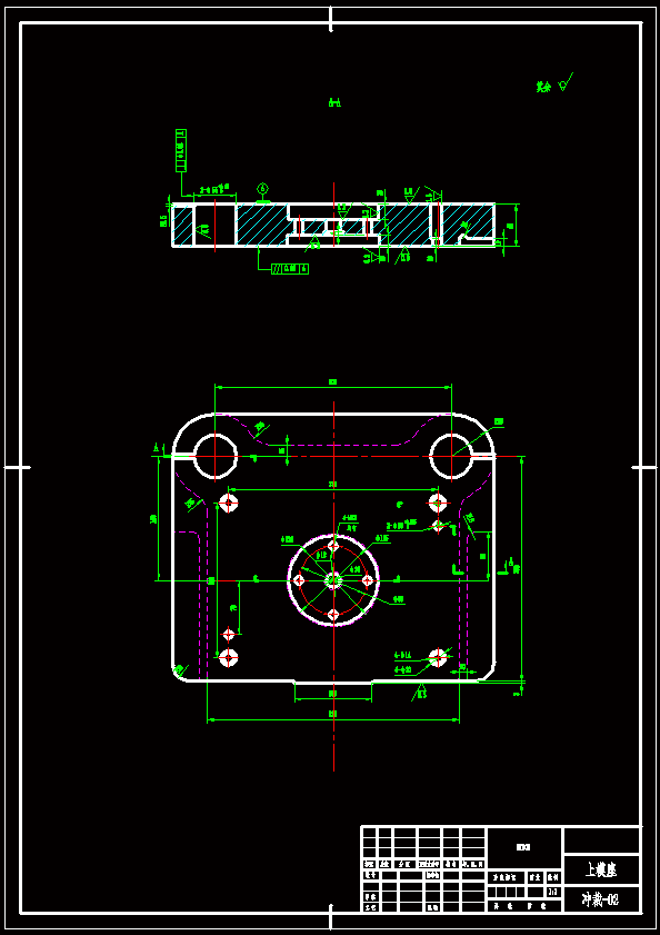 水槽冲压工艺及模具设计【含13张CAD图纸】文分析了水槽成形工艺,介绍了模具结构及设计过程。按照模具设计的一般步骤和要求,先分析了冲压件的形状特点、尺寸大小、精度要求、材料力学性能,并结合模具制造条件、生产批量等因素,分析了零件的冲压工艺性,根据分析初步拟定几套工艺方案。在综合比较几套工艺方案后,确定了冲压零件的工艺方案:先剪切,然后拉深,最后修边冲孔。在此基础上确定了冲压件的排样方式,并计算材料利用率。计算拉深力和冲裁力后,选择了压力机的型号和规格。最后,对模具上非标准件进行设计,对标准件进行选取。 本次设计的模具由拉深模和冲孔切边复合模组成。两套模具都采用了打杆顶块顶出、开式压力机、后侧导柱模架。拉深模采用了压边;冲孔切边复合模还用了废料刀来切掉废料。经过精确计算,可以证明在普通压力机上完全可以实现此类薄料零件的成形。