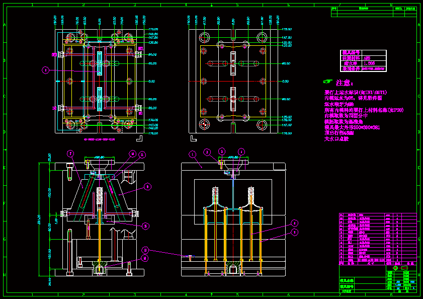开瓶器零件塑料注塑模具设计本次设计的题目是开瓶器零件塑料注塑模具设计。首先对所要设计的产品进行工艺的分析与计算,该塑件采用由丙烯、丁二烯、苯乙烯三种单体共聚而成的ABS为材料,然后在分析计算的基础上确定成型工艺方案,为一模两腔,推杆推出,点浇口,双分型面,浇口套内的主流道采用圆锥形,选用的模架为标准模架的A1型,导柱导套的安装用倒装的安装方式,再在此基础上进入模具总装配图的结构设计以及尺寸的确定。在此基础上对注塑模具的主要零部件尤其是成型零部件的尺寸进行设计与计算,期间要参考塑料成型相关的资料和翻阅各种塑料模具设计手册,并通过计算以确定模具的具体结构及尺寸以及成型零件的相关尺寸,在设计的过程中,主要成型零件采用镶拼结构,利于加工。