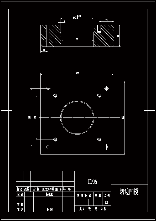 凸缘透盖工艺分析及模具设计凸缘透盖是一种典型的冲压成型零件,此设计的课题对凸缘透盖进行工艺分析并制定工艺方案进行模具设计。该件是一般的带凸缘拉深件,拉深和其他尺寸没有特殊的公差要求