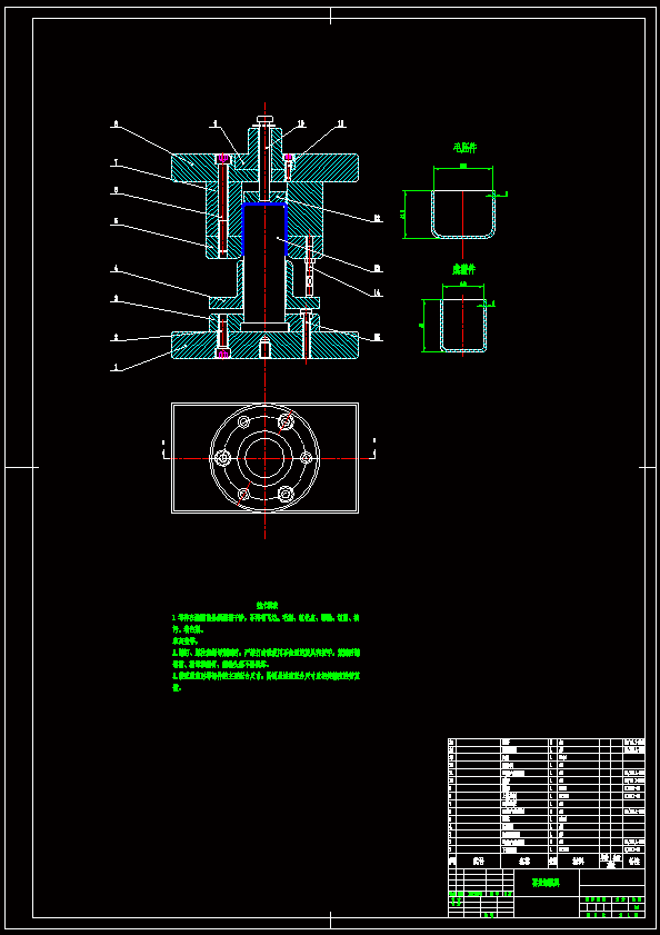 深桶拉深模具工艺分析及模具设计 冲压加工是利用安装在压力机上的模具,对模具里的板料施加变形力,使板料在模具里产生变形,从而获得一定形状、尺寸和性能的产品零件的生产技术。