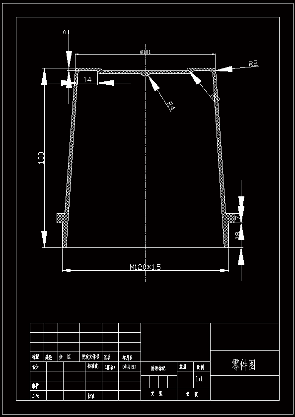 桶体零件冲压模具设计 该工件主要由圆构成,无悬臂、凹槽,结构简单。中间有一个∮29的孔,在凸缘上还平均分布3个∮6的小孔,是一个简单的带有凸缘的筒形件。