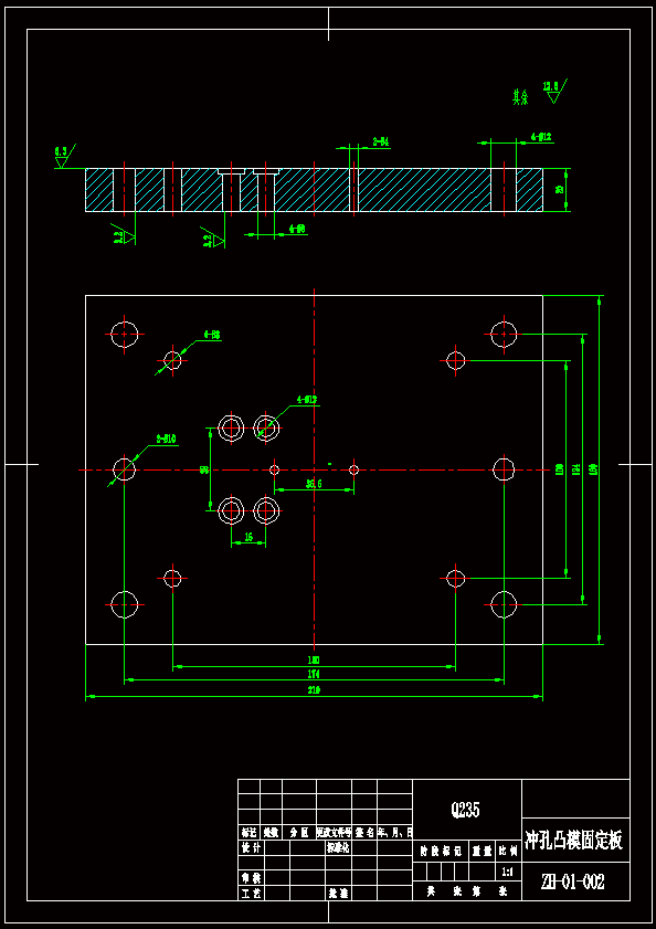 支架冲压模具设计【含20张CAD图纸】在此次的支架工艺分析及模具设计中,分析了支架的结构和成形工艺,计算了毛坯尺寸和冲压力。为了提高支架的生产效率,设计了集两工序为一体的落料冲孔复合模的结构。经过工艺分析、结构设计,论证了其可行性,保证了制品的质量。