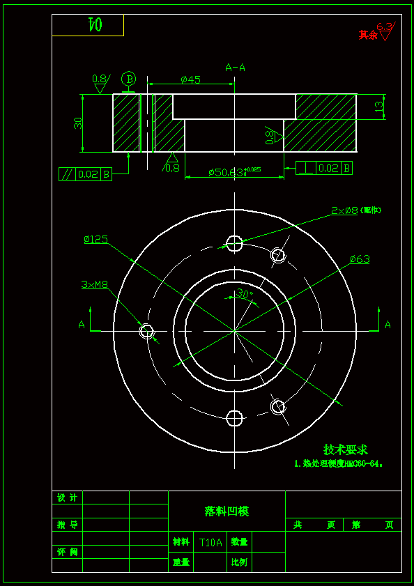 同心圆垫片垫圈落料冲孔复合模具设计 此工件冲孔、落料两个工序。 材料为08钢,具有良好的冲压性能,适合冲裁。工件结构相对简单,有一个φ10mm和1个φ51mm的孔;孔与孔、孔与边缘之间的距离也满足要求。工件的尺寸全部为自由公差,可看作IT14级,尺寸精度较低,普通冲裁完全能满足要求。落料冲孔一次成形,采用复合模生产。