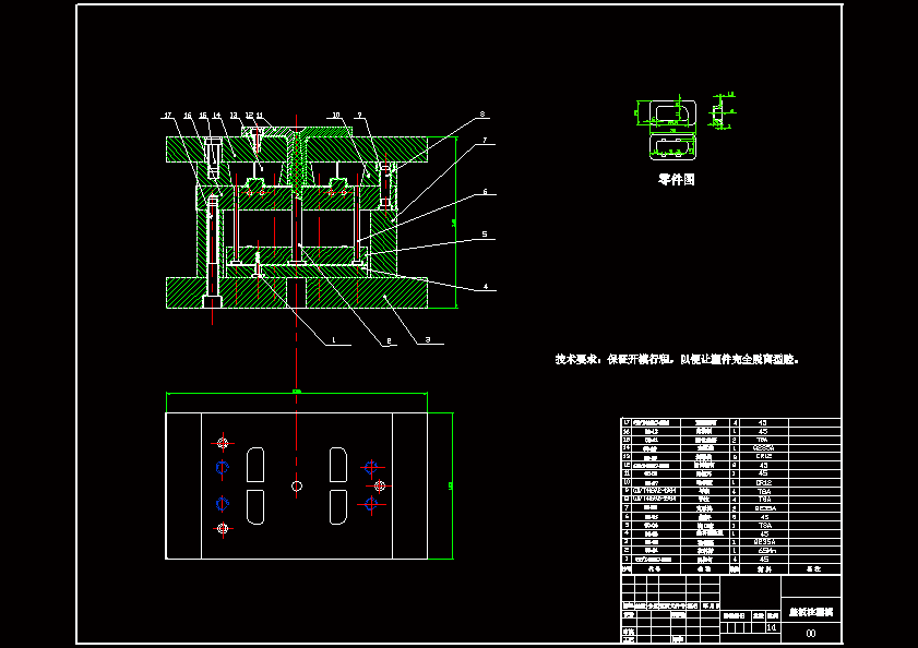 挡条套塑料成型工艺及模具设计 系统介绍了塑件的成形工艺及模具成型结构对塑件质量的影响分析,浇注系统的设计,模具成型部分和总装结构的设计。介绍了挡条套注塑模设计时要注意的要点,并较多的考虑了模具结构的调整性、易更换性及模具成本。从控制制件尺寸精度出发,对挡条套注塑模的各主要尺寸进行了理论计算,以确定各工作零件的尺寸,从模具设计到零部件的加工工艺以及装配工艺等进行详细的阐述,并应用CAD进行各重要零件的设计。