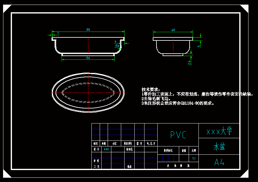 本设计为注塑模的设计,设计分型面选在截面最大处,塑件成型后利用推杆将成型制品从动模上推出,回程时利用复位杆复位。 设计中需要对塑件的尺寸进行计算,确定尺寸精度,然后进行注射机的选取。对注射机参数进行校核,包括模具闭合厚度、模具安装尺寸、模具开模行程、注射机的锁模力等。各个参数都满足要求后才能确定注射机的型号。 在设计过程中,为了更清楚的表达模具的内部结构,因此附有大量的模具结构图和模具局部图,并通过通过CAD和三维软件画出它的二维、三维立体图。