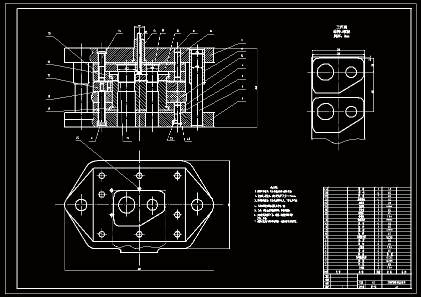 模具属于精密机械产品,它主要由机械零件和机构组成,如成形工作零件、导向零件、支承零件、定位零件及送料机构、抽芯机构、推出机构等。模具与相应的成形设备(如冲床、塑料注射机、压铸机等)配套使用时,可直接改变金属或非金属材料的形状、尺寸、相对位置和性能,使之成形为合格的制件。 模具设计是模具制造的基础,合理正确的设计是正确制造模具的保证;模具制造技术的发展对提高模具质量、精度以及缩短制造模具的周期具有重要的意义;模具的质量、使用寿命、制造精度及合格率在很大程度上取决于制造模具的材料及热处理工艺;模具成本直接关系到制件的成本以及模具生产企业的经济效益;模具工作零件的精度决定制件的精度;模具的寿命又与模具材料及热处理、模具结构以及所加工制作材料等诸多因素有关;模具的安装与使用直接关系到模具的使用性能及安全;而模具的标准化是模具设计与制造的基础,对大规模、专业化生产模具具有极重要的作用,模具标准化程度的高低是模具工业发展水平的标志。 本次设计绘图采用CAD进行,CAD为计算机辅助制图工具,是一款专业机械平面制图软件,具有很强的图象处理功能。