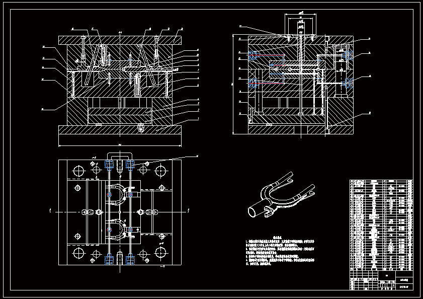 本次的题目是晒衣叉模具设计及其主要零件的数控加工程序编制。通过对塑件进行工艺的分析与比较,最终设计出晒衣叉的注塑模。本从产品结构工艺性,具体模具结构出发,对模具的浇注系统,模具成型部分的结构,顶出系统,冷却系统,注射机的选择以及有关参数的校核,都有详细的设计,同时也简单的编制了一些零件的加工工艺及数控程序。通过整个设计过程表明该模具能够达到此塑件所要求的加工工艺。