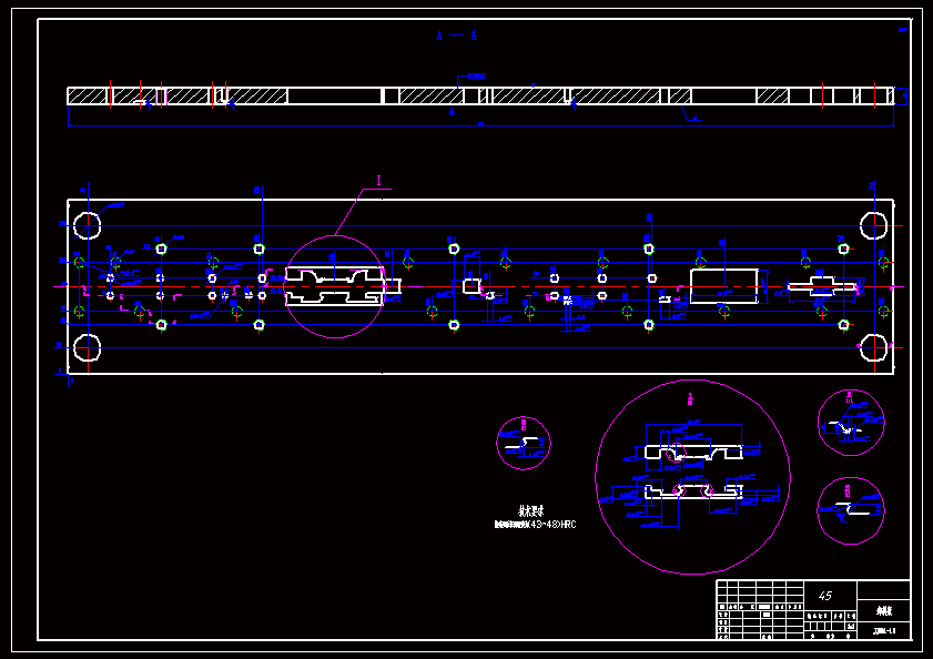 冲压生产靠模具与设备完成其加工过程,生产效率高,操作简便,易于实现机械化和自动化,可以获得其他加工方法所不能或难以制造的、形状复杂的零件。冲压产品一般不需要经过机械加工便可使用。冲压加工过程一般也无需加热毛坯。所以冲压生产不但节约金属材料,而且节约能源,冲压生产一般还具有重量轻和刚度好的特点。在多工位级进模结构设计过程中,首先必须设计级进模的总装结构,然后再在此基础上进行模具其他零部件的设计。本说明书分析了CPU散热卡子的工艺性,介绍了CPU散热卡子多工位级进模总体结构设计,对工件进行了展开计算,确定了工件加工成型的工艺方案和排样方案,对模具进行了工艺计算,根据计算结果进行了凸模、凹模、垫板、导料板、卸料板、镶块等主要零部件的设计,还根据各标准对模具中用到的其他标准件,如模架、导柱导套等,进行了选择与设计。实践证明:该模具结构合理、可靠,并能保证产品质量,对此类零件的级进模设计有参考价值。