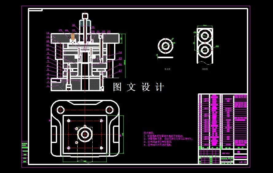 此设计为精密垫圈冲压模具设计,材料:优质碳素结构钢 08钢;板厚:0.6mm,零件的精度为IT8-IT10级,属于精密冲压零件,提供三维(UG格式)+二维装配图1张及主要零件图12张