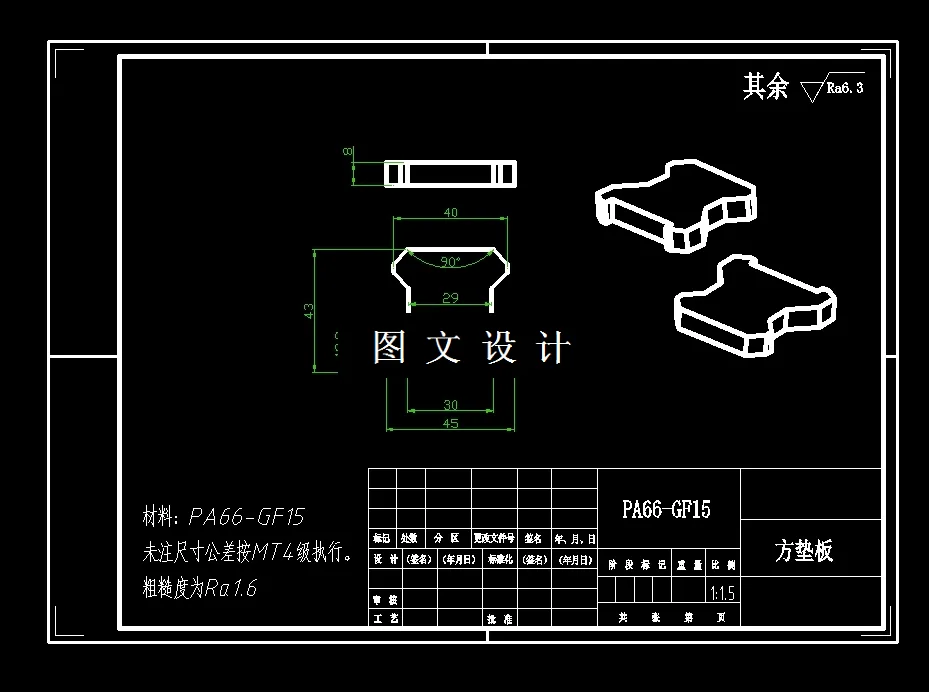 此设计为方垫板注塑模具设计,采用一模四腔,侧浇注口进行填充,提供三维(UG格式)+二维装配图及主要零件图+设计报告文档( 文档约1.2W字 28页)。