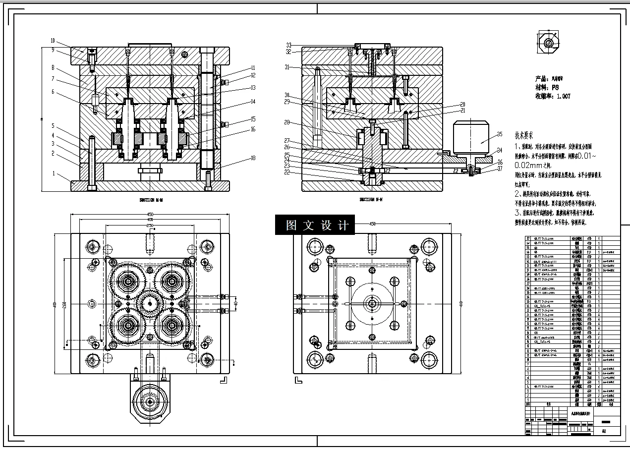 风扇螺母自动脱螺纹注塑模具设计 提供三维(三维有UG8.5格式+STP通用格式)+二维装配图及主要零件图+设计文档( 字数 43页 14304字),本次设计的主要任务是对风扇螺母模具的设计,也就是设计一副注塑模具来生产风扇螺母的塑件产品,以实现自动化提高产量。该课题从产品结构工艺性,具体模具结构出发,对模具的浇注系统、模具成型部分的结构、顶出系统、冷却系统、注塑机的选择及有关参数的校核、都有详细的设计。本次设计的主要难点有:由于塑件为风扇螺母内壁上有螺10mm长螺纹,考虑自动脱螺纹机构,一模4腔。因而模具结构较复杂,采用单点浇口设计。