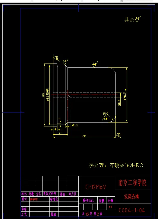 本课题主要是外壳落料拉深模具设计,冲压方案及压力机的选用。为企业解决实际的问题。本课题的设计综合运用了我们所学的机械制图、冷冲压工艺与模具设计、模具设计与制造、冲压模具简明设计手册、公差配合与技术测量基础、冷冲压模具设计指导等专业理论知识、通过设计提高了我的基础理论知识和查阅各种资料的综合分析的能力,使我得到了一次运用所学知识的综合训练。
