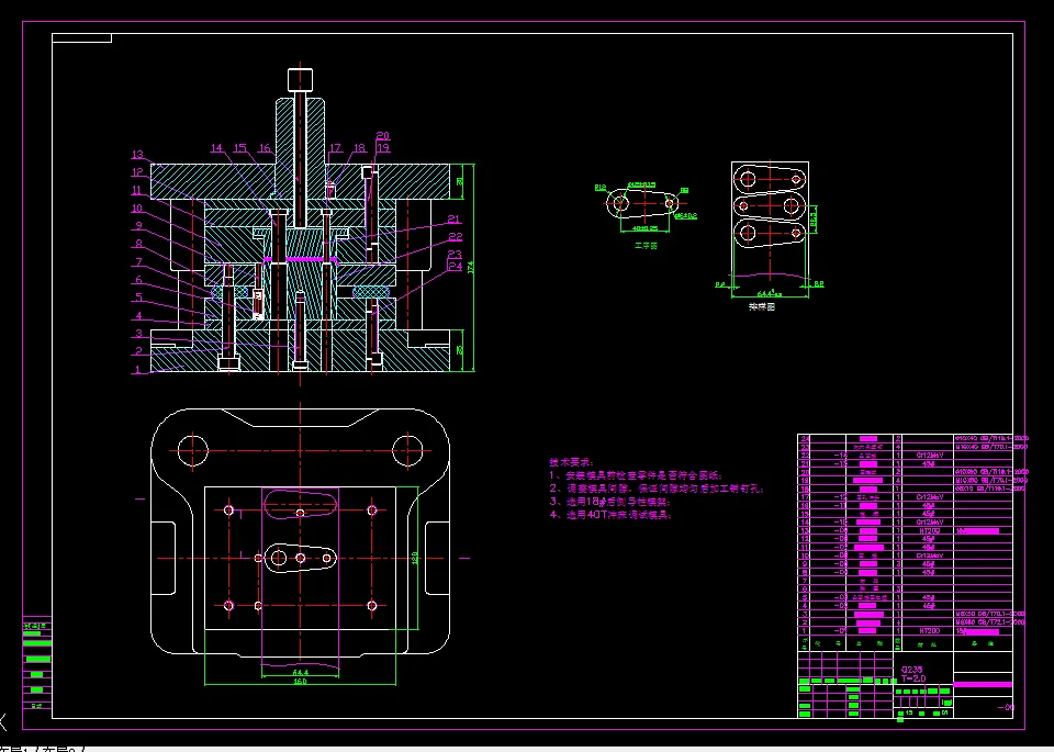 本设计是对给定的产品图进行冲压模具设计。冲压工艺的选择是经查阅相关资料和和对产品形状仔细分析的基础上进行的;冲压模具的选择是在综合考虑了经济性、零件的冲压工艺性以及复杂程度等诸多因素的基础上进行的;产品毛坯展开尺寸的计算是在方便建设又不影响模具成型的前提下简化为所熟悉的模型进行的。文中还对冲压成型零件和其它相关零件的选择原则及选择方法进行了说明,另外还介绍了几种产品形状的毛坯展开尺寸计算的方法和简化模型,以及冲压模具设计所需要使用的几种参考书籍的查阅方法。