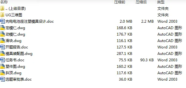 本设计以充电电池座的注塑模具设计为主要内容,详细介绍了注塑模的设计的一般流程,注塑模具的设计一般包含:注塑机的选用,模具布局的确定,浇注系统的设计,抽芯机构的设计,模架的选取,冷却系统的设计以及注塑机参数的校核。