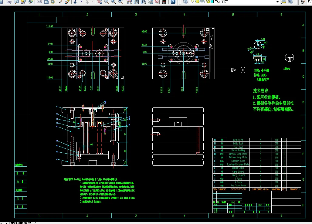 关键词:伞柄;塑料模具;浇注系统;顶出机构
