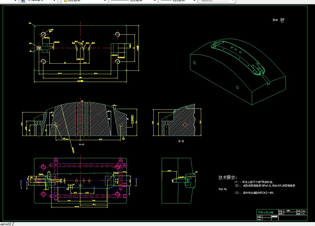 对注塑产品提出了基本的设计原则;通过对绕流板支架工艺的正确分析,设计了一副一模两腔的塑料模具。详细地叙述了模具成型零件包括前模板、前模仁、后模板、后模仁、后模镶件、斜导柱、滑块等的设计与加工工艺过程,重要零件的工艺参数的选择与计算,推出机构与浇注系统以及其它结构的设计过程,综合地处理好产品外观要求与浇口位置及脱模方式之间的问题,并对试模与产品缺陷作了介绍。