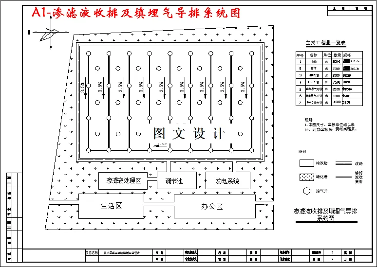 本工程设计所涉及的工程地质为:裸露的地层为棕黄色粉质黏土,渗透系数为2.0×10-5~8.6×10-5cm/s,厚度为3~5m.。如果直接用来填埋垃圾,而不采取防渗措施,将对地下水的卫生安全造成威胁。必须设置人工防渗系统。在人工合成防渗膜中选用了性能较优,国内外使用经验较多的高密度聚乙烯(HDPE)防渗膜。根据中华人民共和国行业标准生活垃圾卫生填埋技术规范中6.0.4 :粘土厚度≥100cm、渗透系数不大于1.0×10-5cm/s,库区底部可采用双层衬里的防渗系统,地下水导流层大于30cm, 符合双层衬里的设计要求。库区边坡采用单层衬里结构的防渗系统,满足黏土厚度大于75cm,渗透系数不大于1.0×10-5cm/s条件,可以适用本填埋场防渗系统的设计要求。综上所述,库区底部选用双层衬里结构,库区边坡选用单层衬里结构,防渗膜选用人工合成膜高密度聚乙烯(HDPE)。