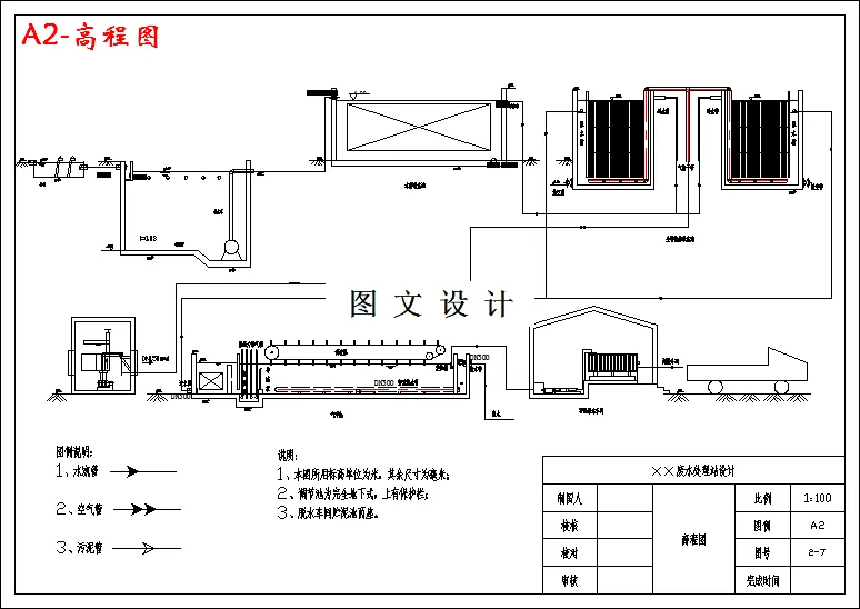本设计经过初步的选用,充分考虑实际的情况,把各种计算校正系数运用于其中,经过系列的计算与核算,最终确定了这个污水处理厂的设备型号、数量、平面布置、高程布置等。经过计算与资料查找,最终确定本工程设计污水处理采用了生物接触氧化法为核心工艺,且分为四组,每组平均日处理流量为2500m3,同时设水解酸化池、气浮池各一座,以便更好地提高出水水质。另外,整个厂区还设鼓风机房、配电中心、污泥处理泵房、以及综合楼等附属构筑物。经过这次的水污染控制工程课程设计课程,让我们有机会把理论课堂上学到的理论知识运用到实际的生产生活中来。以理论只是为基础,结合实际的情况,从而解决实际的生产上的问题,为将来从事本专业的工作打下了坚实的基础。