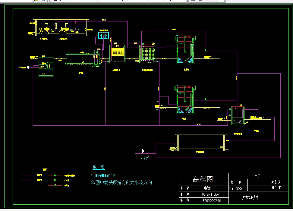 本设计是普宁市北城区的排水工程。其中包括两部分。即,城市排水管网系统的设计和城市污水处理厂的设计。根据城市所处的地理位置和污水厂的规模,并结合考虑脱氮除磷的要求。城市污水处理厂采用厌氧池-卡罗塞尔氧化沟工艺。该工艺污水处理流程为:中格栅→提升泵站→细格栅→沉砂池→厌氧池→卡罗塞尔氧化沟→二沉池→消毒渠→出水排放。污泥处理流程为:污泥→污泥提升泵站→贮泥池→污泥浓缩脱水机房→泥饼外运,通过此工艺的处理,出水水质将达到《城镇污水处理厂污染物排放标准》(GB18918-2002)一级B标准。