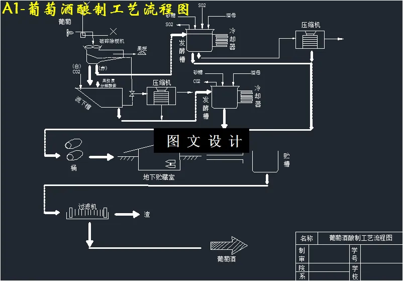 本设计的依据葡萄酒酿造工艺学相关知识和文献资料,参考18世纪初法国拉菲酒庄的传统酿造工艺并结合现代化机械设备加工手段,设计出一套完整的葡萄酒生产线方案,使生产出的葡萄酒能够达到优质酒应有的色泽、香味、口感及状态,并且生产成本合理,符合我国的实际情况。本设计为100t赤霞珠干红葡萄酒的生产线,其工艺流程为:原料的分选、除梗破碎、压榨、发酵、配酒及包装。通过物料衡算可知:主要的生产设备是3t/h的气囊压榨机1台,10t发酵罐9个、8t发酵罐1个、1t发酵罐1个、50t储酒罐1个、225L橡木桶223个。厂房长63米,宽50米,高10米,的面结构为钢结构和混凝土结构及钢、混凝土结构结合体。管理人员及生产人员合计53人,以每天两班生产,每班8小时,该设计需要生产原料154t,总投资1000万元,可达年产100t的设计目标,可以在贺兰山东麓的区推广应用。