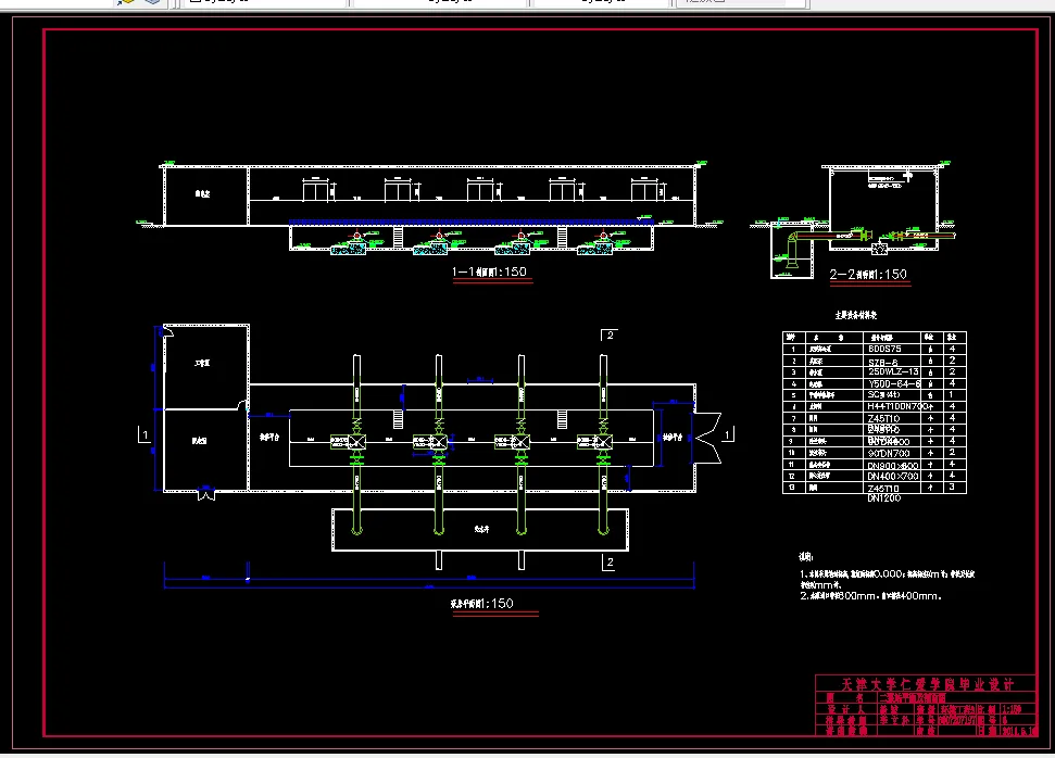 本设计为 10000m3/d 每天污水处理厂工艺设计,通过查阅资料,工艺选择, 构筑物设计计算,平面、高程以及单体图的绘制,使我对城市污水处理厂的设计 计算过程有了较为深入的认识和理解,达到了设计训练的目的。 本设计包括以下内容: CAD 图纸 5 张:平面布置图 1 张 高程布置图 1 张 SBR 反应池单体图 1 张 接触氧化池单体图 1 张 浓缩池单体图 1 张 SBR 是一种间歇式的活性泥泥系统,其基本特征是在一个反应池内完成污 水的生化反应、固液分离、排水、排泥。可通过双池或多池组合运行实现连续进 出水。SBR 通过对反应池曝气量和溶解氧的控制而实现不同的处理目标,具有 很大的灵活性。SBR 池通常每个周期运行 4-6 小时,当出现雨水高峰流量时,SBR 系统就从正常循环自动切换至雨水运行模式,通过调整其循环周期,以适应来水 量的变化。SBR 系统通常能够承受 3-5 倍旱流量的冲击负荷。