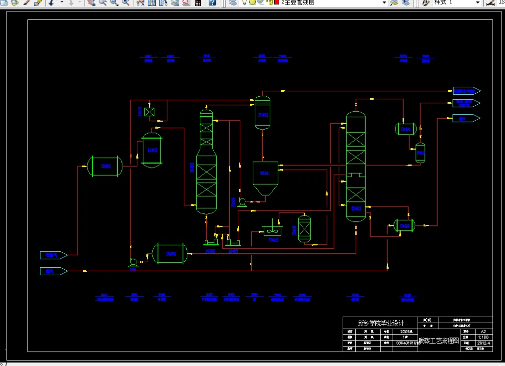 本课题主要研究内容是是 50 万吨/年煤气化制甲醇净化工段低温甲醇洗工艺设计。 本设计的目的是将来自变换装置的原料气气精制。本设计采用 AspenPlus 软件对其生产 过程和主要设备进行了物料衡算、塔设备计算、换热器设计、热量衡算等工艺设计和计 算。绘制了包括工艺流程图、塔设备装备图、车间布置图和总厂区布置图等图纸 8 张, 并进行了安全环保和经济评价。
