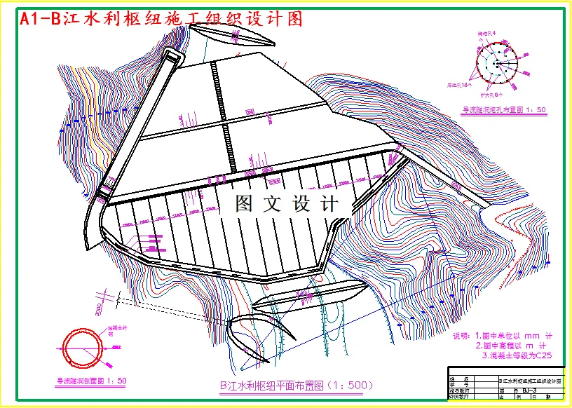 本次设计主要是为了开发利用B江流域的水利资源,建设一个以发电为主,同时兼顾灌溉、供水、防洪及养殖等综合利用效益的跨流域开发的水利水电枢纽工程。在明确了建设目的并具有了建设依据和条件后设计的枢纽概况如下:B江水利枢纽为复合土工膜防渗堆石坝最大坝高53.3米,装机6400kW,电站设计水头174米,保证出力1461kW,装有两台3200kW机组,正常蓄水位276.3m,主坝长236.5米左右,上游边坡1:1.52,下游边坡1:1.52。本次设计主要内容为:经洪水调节确定坝顶高程;坝型的比选;第一主要建筑物的设计;施工组织设计。并进行了导流隧洞投标文件的编写,其中重点对本次设计专题--技术标进行了设计及编写。复合土工膜防渗堆石坝是一种新的坝型,其防渗材料---复合土工膜的设计、施工、质量控制是该类坝型的技术关键。本工程导流隧洞施工具有施工工作断面小,工期紧的特点,故其施工工艺是关键。本次设计以一般混凝土面板堆石坝和一些已建复合土工膜堆石坝为参考,在注重各细部独立分项设计的同时,综合考虑了整体工程的统一性。在专题的编写中参考已建工程的导流隧洞,对导流隧洞的施工组织进行了设计,确保按期完成导流隧洞标段工程。在设计过程中既充分运用了所学知识,广泛参考了堆石坝设计、施工等相关书籍,并在规范规定内设计,体现了本设计的科学性、规范性。
