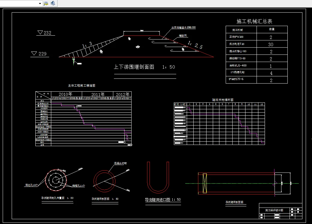 本次设计主要内容为:经洪水调节确定坝顶高程;坝型的比选;第一主要建筑物的设计;施工组织设计。在进行了分标以后,对其中的标段Ⅰ即主副坝标段进行了标底的编制。
