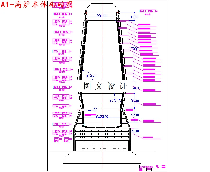 本设计是根据唐山地区条件设计的一个年产560万吨的高炉炼铁车间。整个车间的平面布置采用半岛式平面布置形式。设计的高炉有效容积是3500m3。其中高炉的炉衬设计方法采用的是均衡炉衬的方法,根据不同的冶炼条件砌筑不同的砖。上部采用的砖型有高砖,下部采用的是全碳砖炉底。冷却方式:炉身部分采用板壁结合的方式炉腰部分采用凸台冷却壁;炉缸和炉底采用光面冷却壁和水冷炉底结构。设计的热风炉采用传统改进型内燃式热风炉。蓄热式和燃烧室在同一炉壳内,中间用隔热墙隔开;采用眼睛型燃烧室。这部分同时包括热风炉各种设备和阀门的选取计算。上料系统采用的皮带机连续上料,同时增加了皮带的速度和宽度,满足高炉冶炼的要求。炉顶装料设备采用并罐式无料钟炉顶装料。喷吹系统增加了煤的数量,采用了单管路串罐式直接喷吹。煤气处理设备采用的是湿法除尘设备。所涉及的计算有高炉和热风炉尺寸的计算、高炉的物料平衡和热平衡计算以及热风炉风机的选择等。