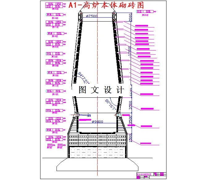 本设计是根据石钢燃料条件,设计生产年产280万吨炼钢生铁的炼铁厂。主要包括车间选址、车间平面布置、高炉座数的确定、高炉本体设计、高炉上料系统设计、高炉炉顶装料系统设计、高炉热风系统设计、高炉煤气系统设计、高炉渣铁处理系统设计、高炉喷吹燃料系统设计、高炉冶炼综合计算。设计的高炉有效容积是2017m3。其中高炉的炉衬设计方法采用的是均衡炉衬的方法,根据不同的冶炼条件砌筑不同的砖。上部采用的砖型有高砖,下部采用的是全碳砖炉底。冷却方式:炉身部分采用板壁结合的方式炉腰部分采用凸台冷却壁;炉缸和炉底采用光面冷却壁和水冷炉底结构。设计的热风炉采用传统改进型内燃式热风炉。蓄热式和燃烧室在同一炉壳内,中间用隔热墙隔开;采用眼睛型燃烧室。这部分同时包括热风炉各种设备和阀门的选取计算。上料系统采用的皮带机连续上料,同时增加了皮带的速度和宽度,满足高炉冶炼的要求。炉顶装料设备采用串罐式无料钟炉顶装料。喷吹系统增加了煤的数量,采用了单管路串罐式直接喷吹。煤气处理设备采用的是湿法除尘设备。所涉及的计算有高炉和热风炉尺寸的计算、高炉的物料平衡和热平衡计算以及热风炉风机的选择等。
