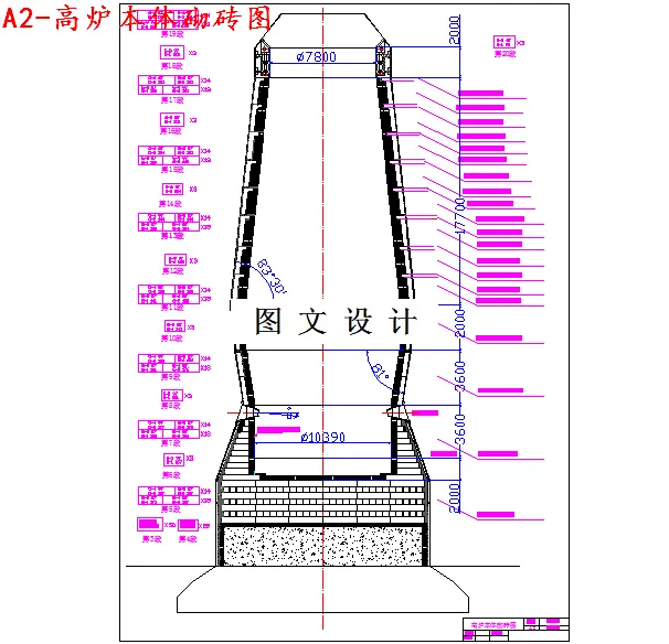 高炉炼铁是获得生铁的主要手段,是钢铁冶金过程中最重要的环节之一,在国民经济建设中起着举足轻重的作用。高炉是炼铁的主要设备,本着优质、高产、低耗和对环境污染小的方针,设计建造一座年产生铁360万吨的高炉炼铁车间,本设计说明书详细的对其进行了高炉设计,其中包括绪论、工艺计算(包括配料计算、物料平衡和热平衡)、高炉炉型设计、高炉各部位炉衬的选择、炉体冷却设备的选择、风口及出铁场的设计、原料系统、送风系统、炉顶设备、煤气处理系统、渣铁处理系统、高炉喷吹系统和炼铁车间的布置等。设计的同时还结合国内外相同炉容高炉的一些先进的生产操作经验和相关的数据,力争使该设计的高炉做到高度机械化、自动化和大型化,以期达到最佳的生产效益。