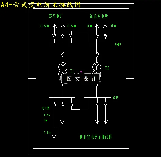 本次设计的内容是青武电所继电保护设计,其目的是通过在电力系统中装设一些继电保护装置,以保证当电力系统中某电气元件发生故障时,能自动、迅速、有选择地将故障元件从电力系统中切除,避免故障元件继续遭到破坏,使非故障元件迅速恢复运行;并且保证当系统中电气元件出现不正常运行状态时,如三相短路、两相短路、单相接地短路、两相接地短路、变压器绕组间的匝间单相断线、两相断线、过电流、过负荷、还有线路的保护等,能及时反应并根据运行维护的条件发出信号或跳闸。 主要采用的保护有瓦斯保护、变压器差动保护、过电流、过负荷、距离保护。 本次设计是我们在校期间进行的最后一个非常重要的综合性实践教学环节,也是我们学生全面运用所学基础理论、专业知识对实际问题进行设计(或研究)的综合性训练,同时还是我们将来走向工作岗位而奠定的基本实践。通过本次设计可以增强我们运用所学知识解释实际问题的能力和创新能力,以便更好地适应工作的需要。 电力系统继电保护的设计与配置是否合理,直接影响电力系统的安全运行,故选择保护方式时,满足继电保护的基本要求。选择保护方式和正确的整定计算,以保证电力系统的安全运行。